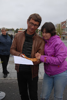 Nå har vi hatt forskningstorg og jeg må si jeg er imponert over hvor interessert folk er i matematikk. De fleste som kom innom hadde med seg barn og var opptatt av hvordan de kan støtte barna i arbeidet med matematikk. Men vi hadde også en del utenlandske mennesker innom. En gruppe canadiske var veldig interesserte i norsk utdanning og noen tyske ungdommer lekte seg med å plassere brøker på tallinja vi hadde hengt opp.